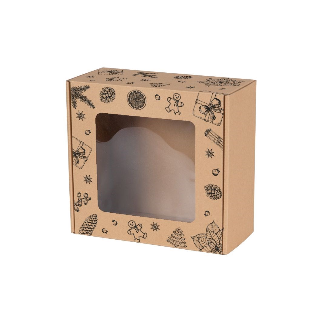 Pudełko fasonowe z okienkiem 200 × 200 × 100 mm - Nadruk Świąteczny