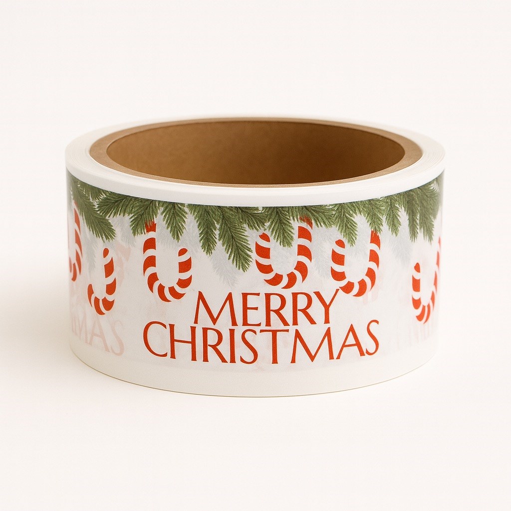 Taśma świąteczna Merry Christmas – 45 mm × 50 m (białe tło)