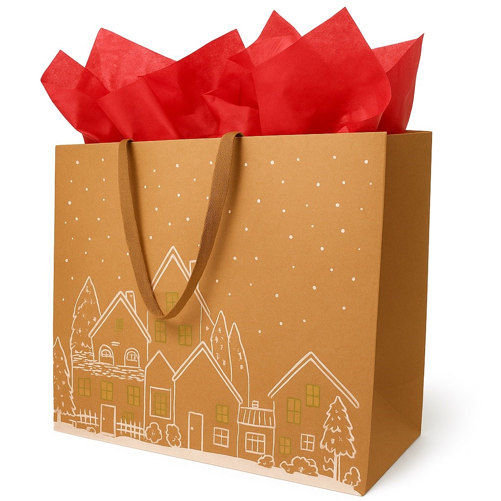 Dzięki solidnej konstrukcji doskonale sprawdza się przy pakowaniu mniejszych prezentów, upominków oraz produktów detalicznych. Złoty kolor nadaje jej eleganckiego, świątecznego charakteru, idealnego na sezon zimowy.