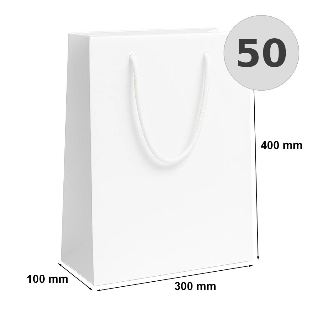 Torba Laminowana Biała 300×100×400 mm (50 sztuk)