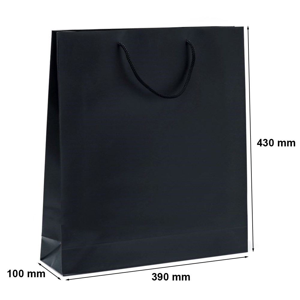 Wyjątkowo wytrzymała i elegancka torba laminowana w kolorze czarnym to idealna opcja na prezent, zakupy czy przechowywanie rzeczy. Wykonana z wysokiej jakości materiałów, zapewnia trwałość i estetykę.