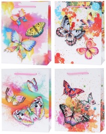 Jako sklep specjalizujący się w oferowaniu produktów o szerokim zastosowaniu postanowiliśmy dołączyć do naszej oferty ekonomiczny zestaw kolorowych torebek prezentowych, idealnych na każdą okazję. Mocne papierowe torby upominkowe sprzedawane są w zestawie po 12 sztuk, który zawiera 4 różnorodne motywy z motylami.