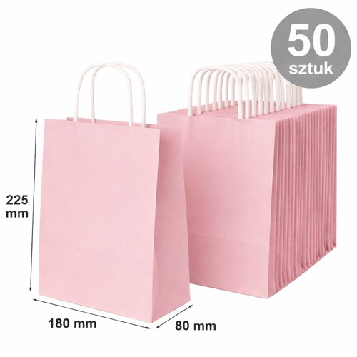 Torebka Papierowa Pastelowa Różowa 180×80×225 mm (50 sztuk)