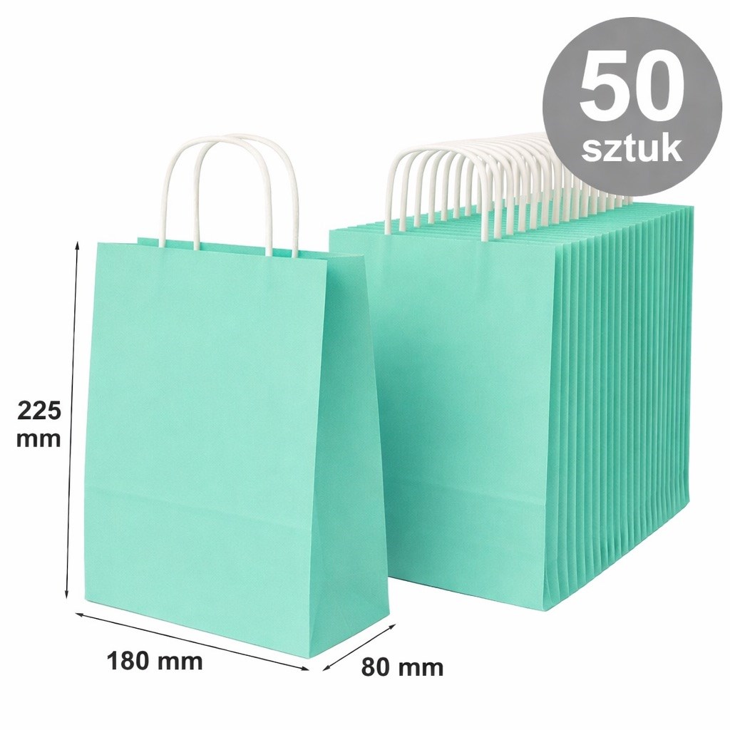 Torebka Papierowa Pastelowa Zielona 180×80×225 mm (50 sztuk)
