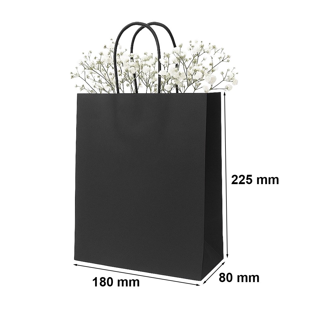 Czarna torebka papierowa 180 x 80 x 225 mm z uchwytem skręcanym – 90 g/m²