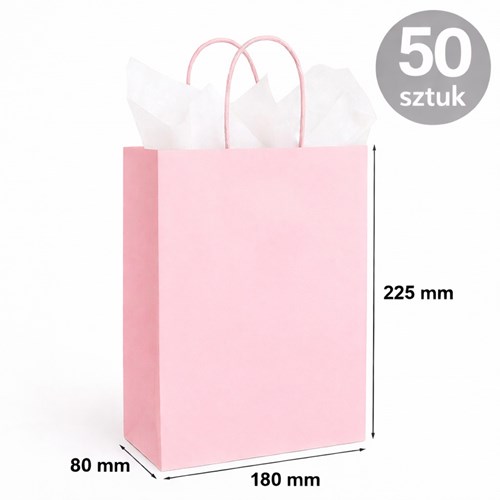 Torba Papierowa Kraft Jasny Różowy 180×80×225 mm (50 sztuk)