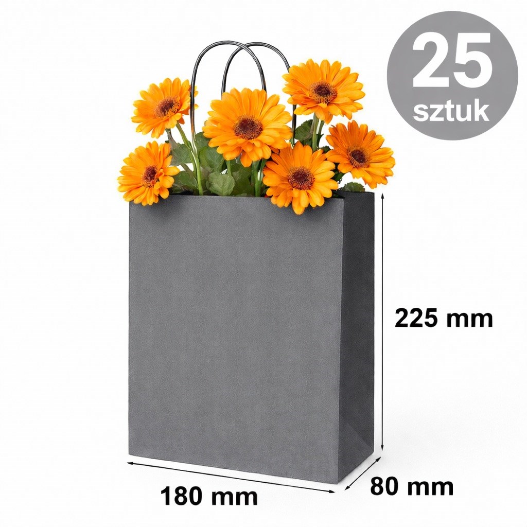 Torba Papierowa Kraft Szara 180×80×225 mm (25 sztuk)