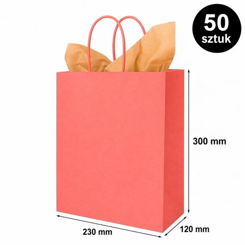 Torba Papierowa Ozdobna Prezentowa 230 × 120 × 300 mm Jasnoczerwona (50 sztuk)