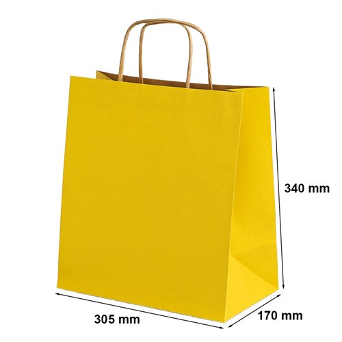 Jeśli poszukujesz toreb prezentowych lub zakupowych innych niż wszystkie, dobrze trafiłeś. W tej ofercie przedstawiamy torbę papierową ECOBAG w kolorze żółtym o podwyższonej gramaturze, wynoszącej aż 100 g/m2, która wspaniale radzi sobie nawet z większym ciężarem. Jej dno, wykonane w sposób klockowy oraz uchwyt z solidnego sznurka papierowego sprawiają, że torba jest całkowicie bezpieczna i prezentuje się w bardzo estetyczny sposób.