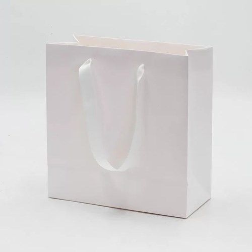 Torba papierowa o wymiarach 245×110×260 mm przeznaczona jest do pakowania produktów formatu A5 oraz mniejszych opakowań. Wykonana z białego papieru kraft o gramaturze 200 g/m2 zapewnia dobrą sztywność i estetyczną prezentację zawartości. Wymienne uchwyty umożliwiają dopasowanie koloru do identyfikacji wizualnej marki. Torba przystosowana jest do personalizacji nadrukiem oraz uszlachetnień foliowych.