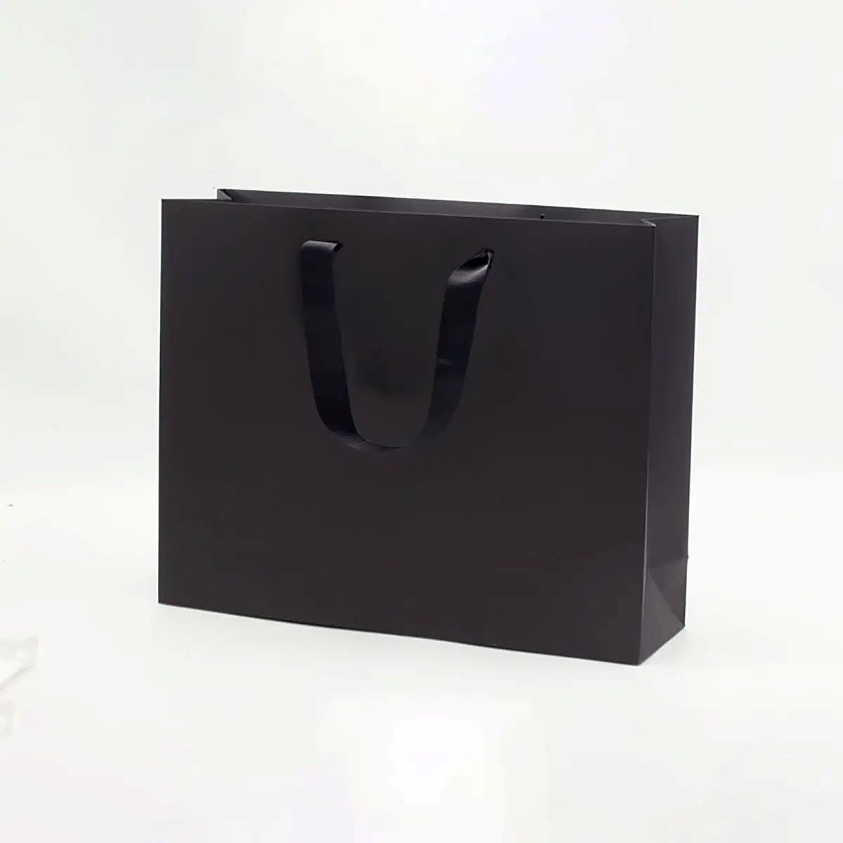 Czarna torba papierowa wykonana z papieru typu art paper została zaprojektowana do pakowania produktów o większej objętości i wadze. Sztywna konstrukcja z papieru o gramaturze 250 gsm zapewnia stabilność i bezpieczeństwo przenoszenia zawartości. Pojemny format umożliwia wygodne pakowanie zestawów prezentowych oraz większych produktów premium. Wymienne uchwyty pozwalają dopasować torbę do identyfikacji wizualnej marki lub konkretnej okazji.