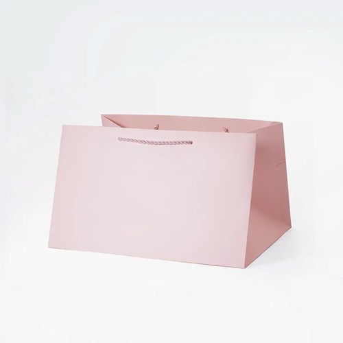 Delikatny róż w połączeniu z matową powierzchnią nadaje torbie elegancki i nowoczesny wygląd. Gładka struktura papieru podkreśla estetykę opakowania, a skręcane uchwyty tworzą spójną, dekoracyjną całość. Proporcjonalny kształt sprawia, że torba prezentuje się stabilnie i schludnie. To opakowanie, które subtelnie eksponuje zawartość.