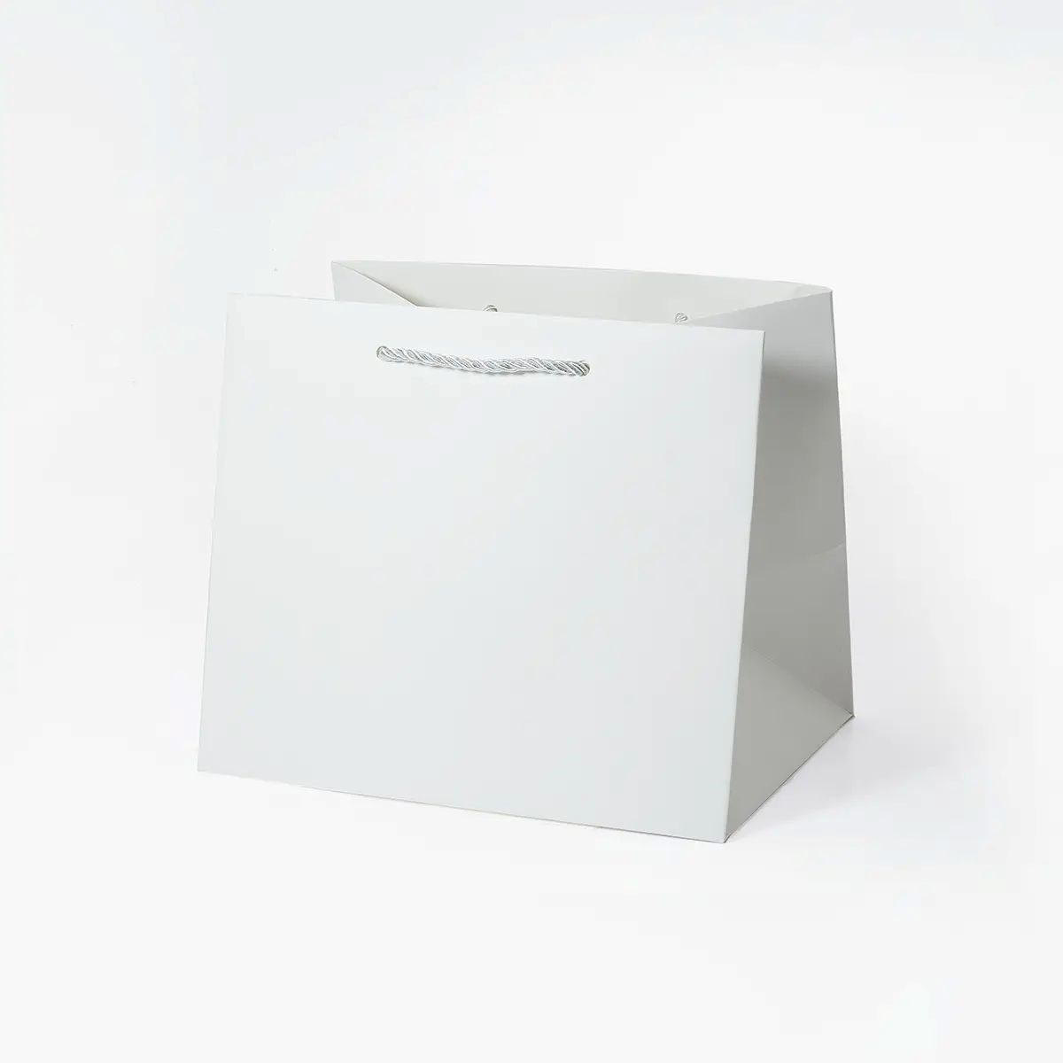 Biała torba papierowa o zwiększonej głębokości została zaprojektowana do pakowania drobnych, ale wyższych lub bardziej objętościowych produktów. Kompaktowa podstawa w połączeniu z głębszym profilem ułatwia bezpieczne ułożenie zawartości. Sztywna konstrukcja oraz wzmocnione dno pozwalają przenosić produkty o średniej wadze bez utraty formy. Matowa laminacja poprawia trwałość powierzchni i estetykę użytkowania.