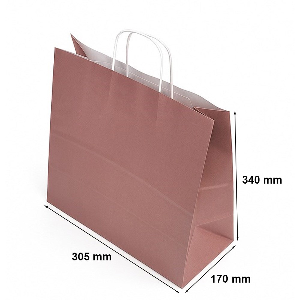 Torby papierowe produkowane są z odpowiedniej jakości papieru barwionego w masie o gramaturze 100 g/m2, który wyróżnia się wysoką wytrzymałością. Posiada szerokie dno typu klockowego oraz wytrzymały i poręczny uchwyt. Wzmocnione dno uniemożliwia zgniecenie zawartości i ułatwia przenoszenie cięższych przedmiotów. Pojemność torby wynosi 17,5 l. Ze względu na użyty surowiec torba upominkowa może zostać poddana recyklingowi.