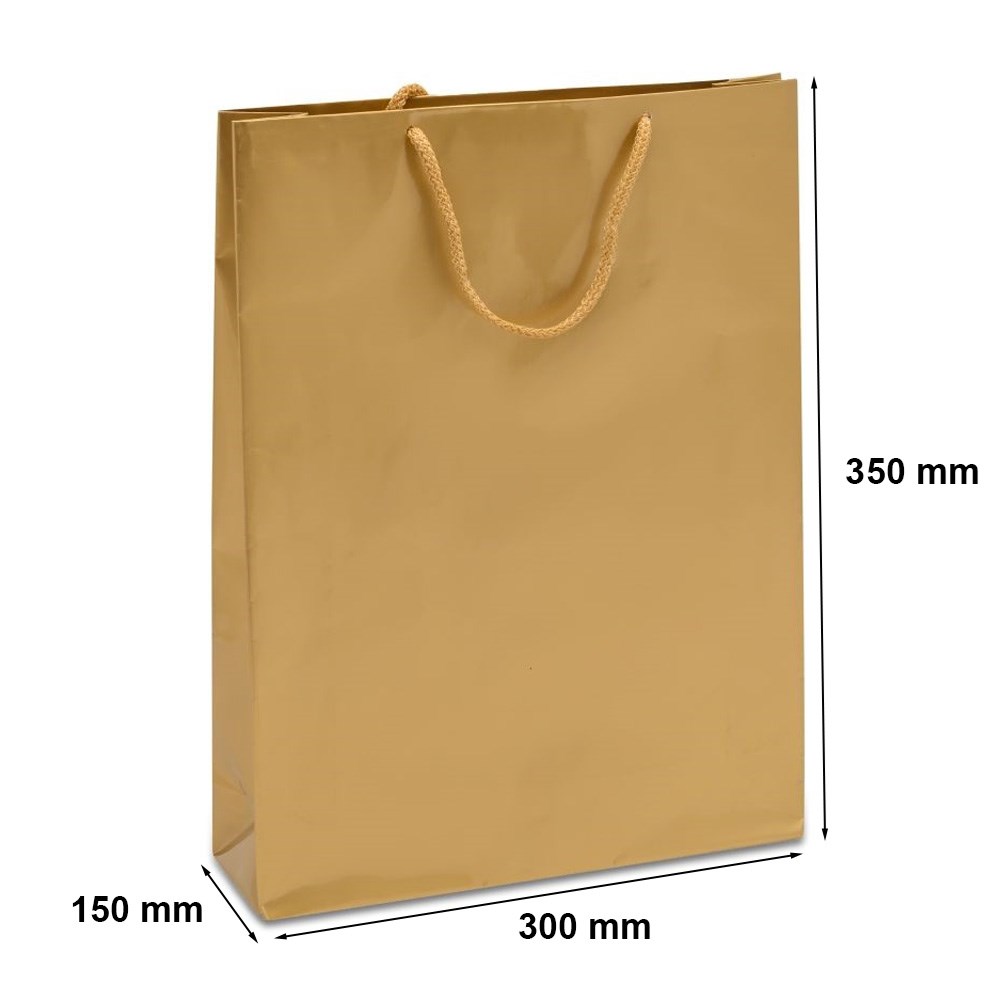 Torba prezentowa w kolorze złotym to uniwersalne opakowanie prezentowe. Dzięki temu, że jest jednokolorowa, może zostać wykorzystana na wiele okazji. Sprawdzi się do wręczenia upominku w ramach urodzin, jubileuszy, ślubu czy okazji biznesowych. Torba Prestige w kolorze złotym to eleganckie opakowanie prezentowe. Wykonana została z papieru ozdobnego pokrytego błyszczącym lakierem. Dzięki temu stanowi ozdobę dla każdego prezentu. Torebka upominkowa może zostać wykorzystana wielokrotnie.