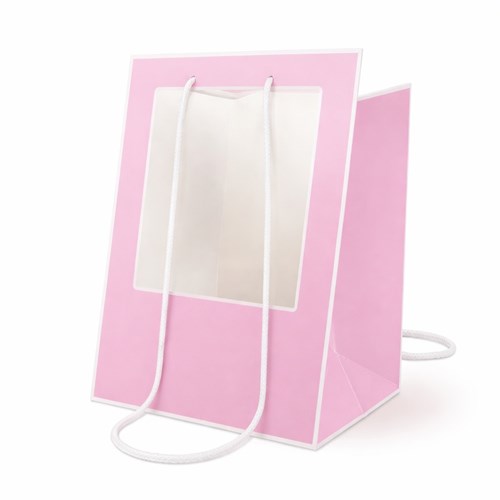 Torba prezentowa z oknem w kolorze liliowym o wymiarach 300 × 300 × 400 mm to opakowanie przeznaczone do pakowania bukietów oraz większych prezentów.