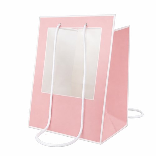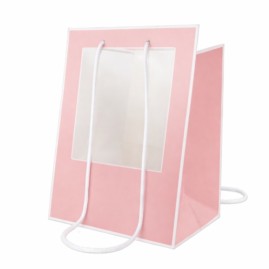 Torba Prezentowa z Oknem 300 × 300 × 400 mm Różowa (1 sztuka) – torba na bukiety i prezenty z oknem