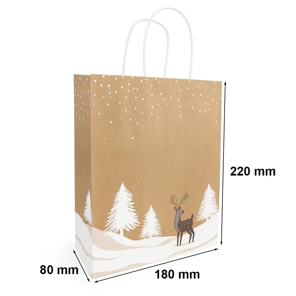 Świąteczna torebka papierowa TINO 180 x 80 x 220 mm z uchwytem skręcanym – 90 g/m²