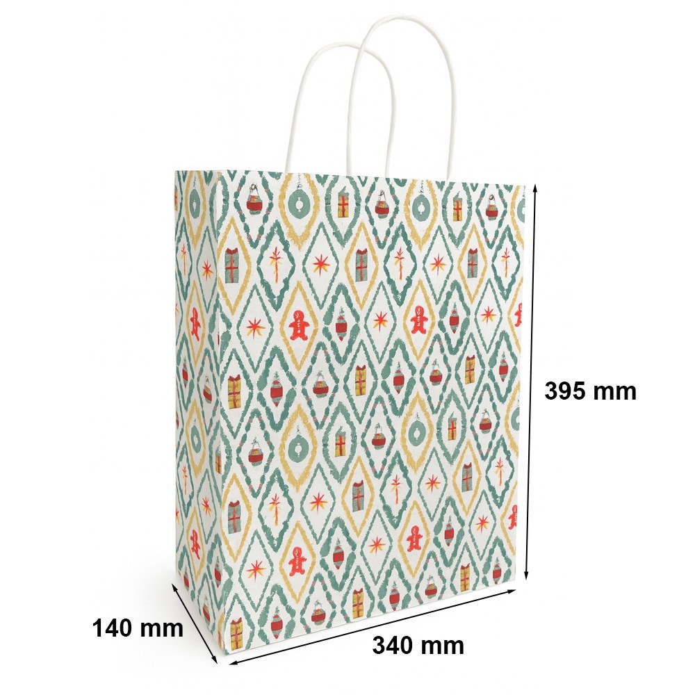 Świąteczna torebka papierowa THEOTIME 340 x 140 x 395 mm z uchwytem skręcanym – 100 g/m²
