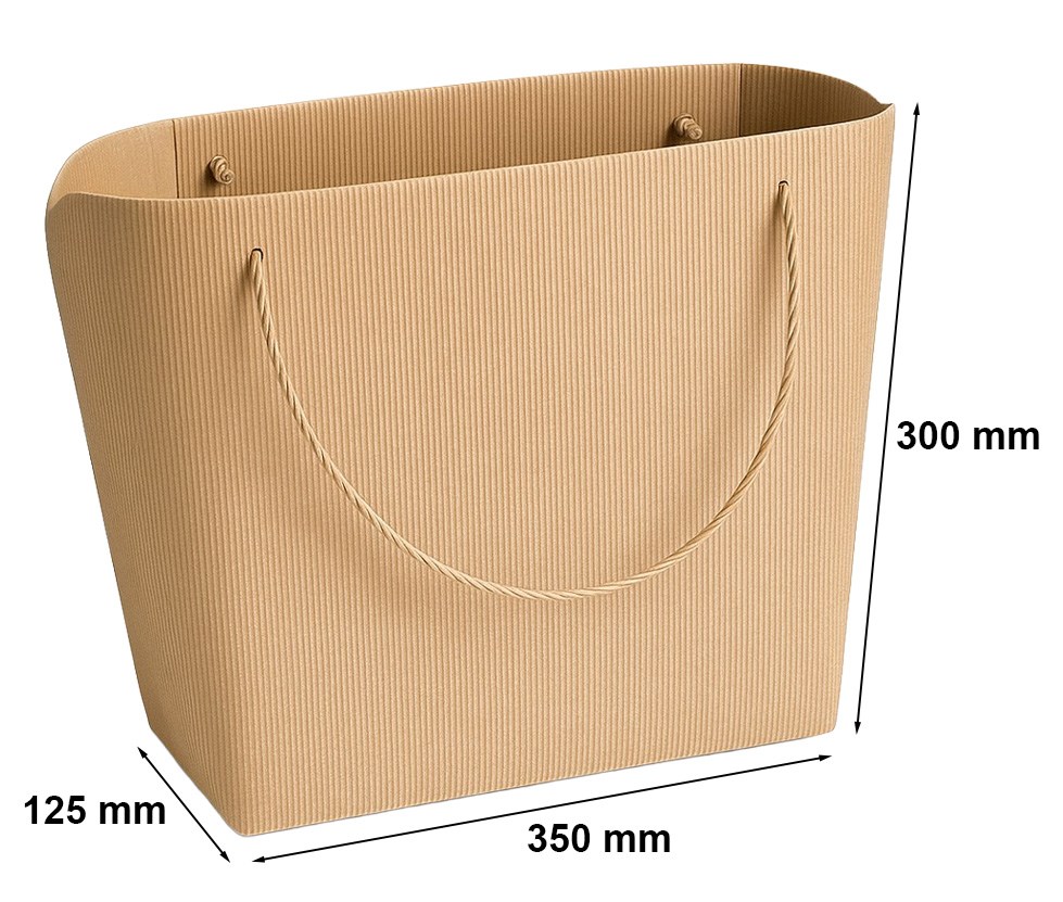 Nasza torba z tektury karbowanej to nie tylko praktyczne opakowanie, ale również wyraz Twojego stylu. Oryginalna struktura materialu dodaje jej unikalnego charakteru, a naturalny brązowy kolor podkreśla elegancję i surowość formy. Bez względu na to, czy używana jest jako funkcjonalna torba na zakupy, czy wyjątkowe opakowanie prezentowe, z pewnością przypadnie do gustu nawet najbardziej wymagającym estetom.