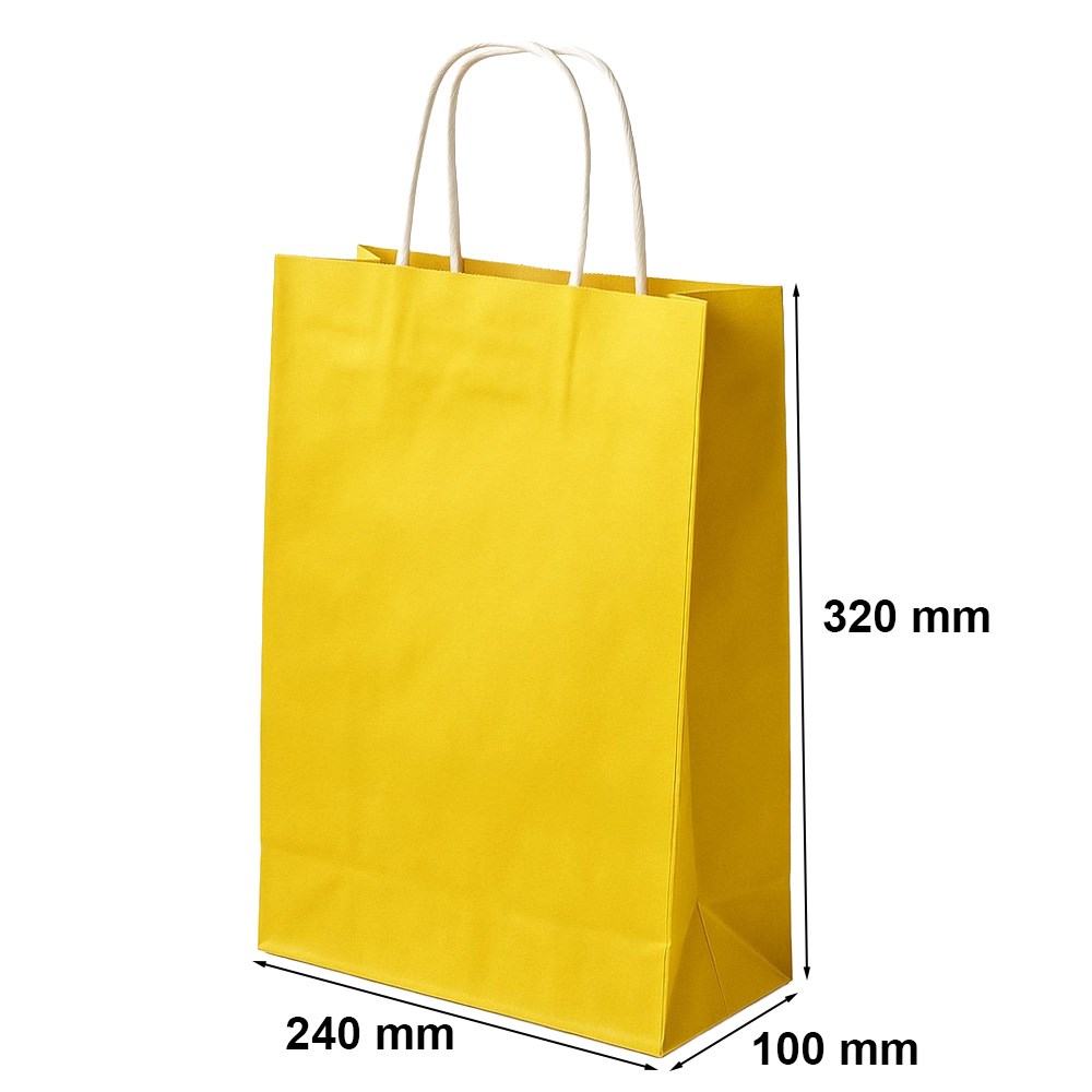 Żółta torba upominkowa w rozmiarze 240x100x320 charakteryzuje się uchwytem ze sznurka papierowego. Ma ona klockowe dno, a jej pojemności wynosi 7,5l. Gramatura papieru natomiast 90gr/m². Warto podkreślić, że została ona wykonana z wysokogatunkowego papieru o bardzo dobrej jakości. Taka torba - wykonana precyzyjnie, solidnie i profesjonalnie - jest wytrzymała i trwała. Dlatego też możesz w niej umieścić wiele przedmiotów, nawet nieco cięższych i mieć pewność, że się nie rozerwie.