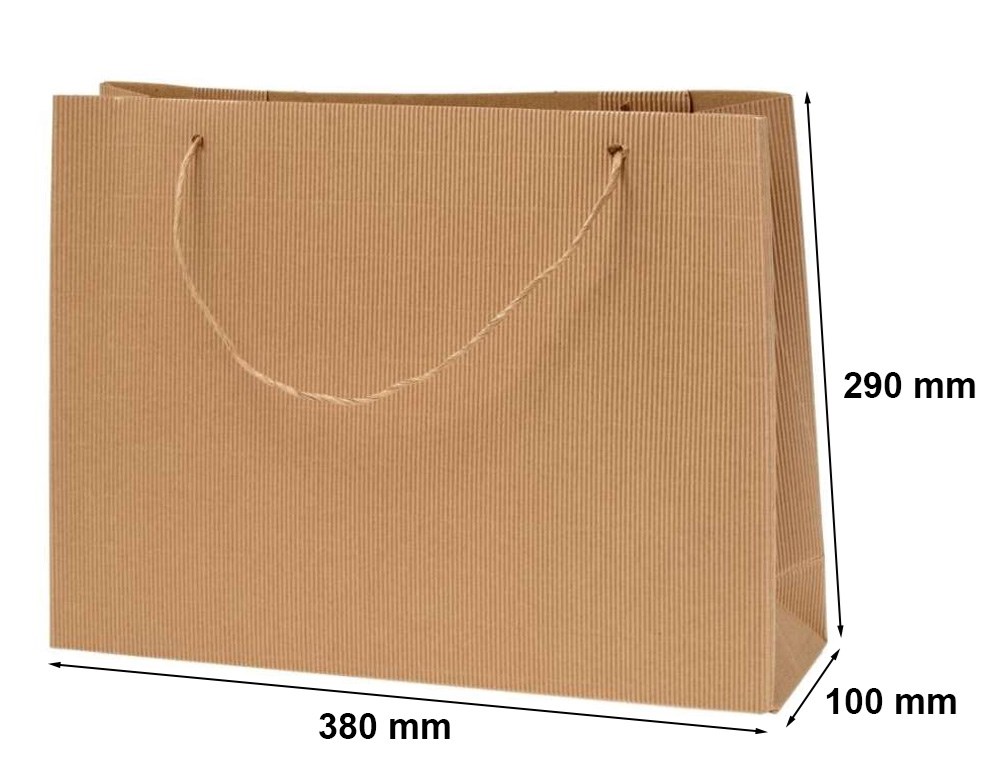 Jeśli szukasz pomysłu na eleganckie i przyjazne dla środowiska opakowanie prezentu, wybierz tekturową torebka prezentową o wymiarach 380x100x290 mm. Torebka jest wykonana z karbowanej tektury z uchwytem z skręcanego papierowego sznurka. Jest to bardzo estetyczne opakowanie bez wzorów i motywów tematycznych, jednokolorowe, które będzie doskonałe niezależnie od okazji.