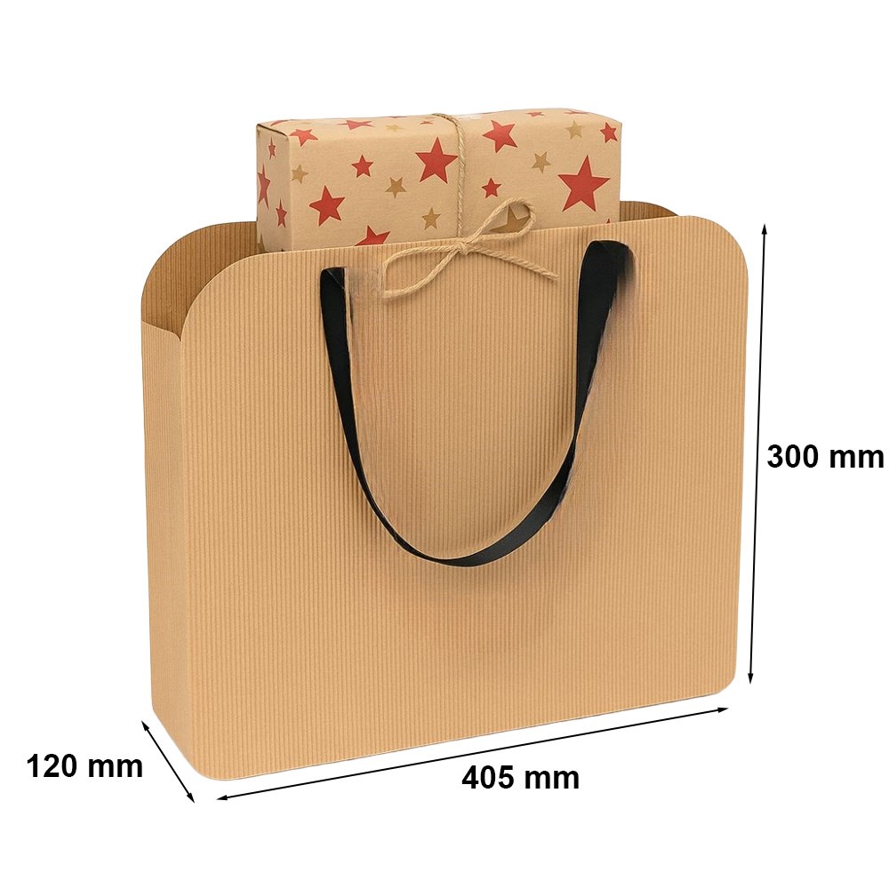 Poszukujesz uniwersalnego, ale jednocześnie eleganckiego opakowania na prezent? Tekturowa torebka prezentowa o wymiarach 405x120x300 mm będzie idealnym rozwiązaniem. Wykonana z biodegradowalnej tektury, nie tylko jest przyjazna dla środowiska, ale też wielorazowego użytku. Neutralny design torebki sprawia, że pasuje ona na każdą okazję - czy to będą urodziny, święta, czy formalne spotkania biznesowe.