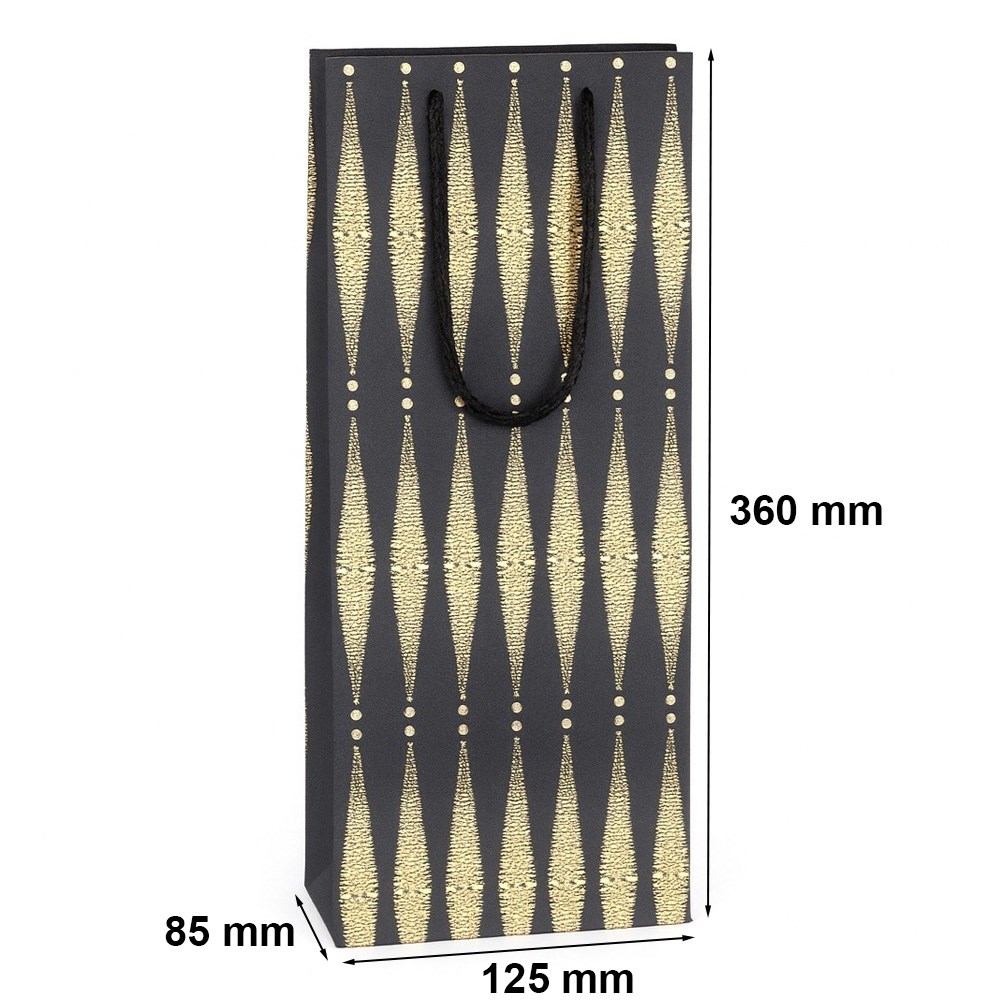 Torebka na wino – czarna ze złotymi ozdobnymi elementami 125 × 85 × 360 mm