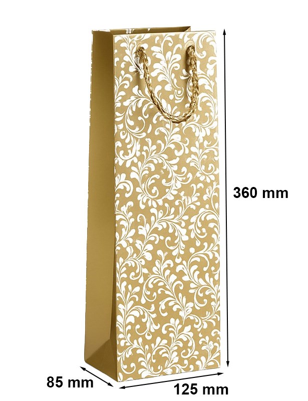 Torebka papierowa, wymiary której są idealnie dopasowane do większości butelek. Butelka dobrego wina, przedstawiona w eleganckiej torbie papierowej, jawi się jako najbardziej wyrafinowany prezent. Odpowiednie dla prezentów biznesowych i osobistych, wręczanych z okazji jubileuszy i świąt.