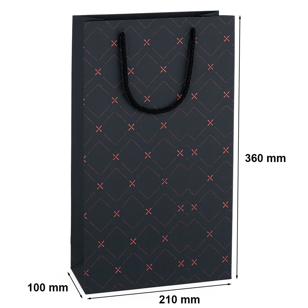 Torebka na wino – czarna z czerwonymi elementami 210 × 100 × 360 mm