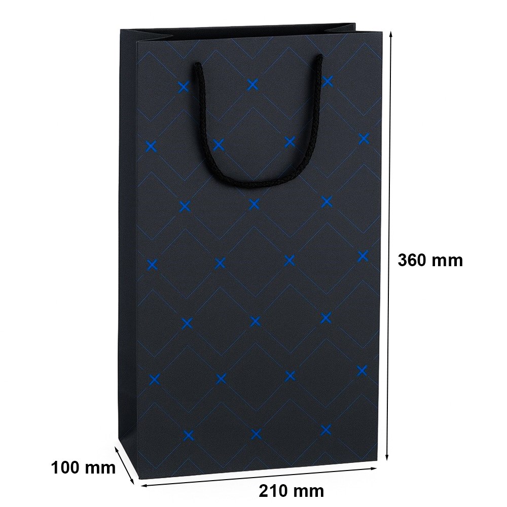 Torebka na wino – czarna z granatowymi elementami 210 × 100 × 360 mm