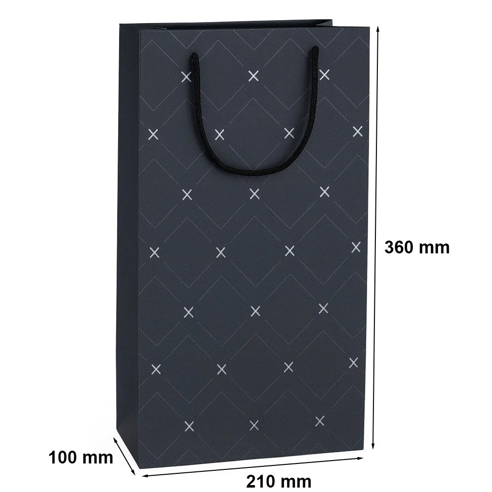 Torebka na wino 210 × 100 × 360 mm – czarna z srebrnymi elementami
