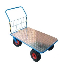 Ergonomiczny i wyjątkowo łatwy do prowadzenia wózek z mocną platformą ładunkową pokrytą blachą aluminiową z tłoczeniem zapobiegającym przesuwaniu się towarów. Pojazd przeznaczony jest do przewozu dowolnych przedmiotów i opakowań, których waga nie przekracza 280 kg. Stabilność wózka gwarantują wytrzymałe, lekkobieżne koła z pełnym ogumieniem.