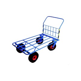 Wózek z platformą ramową i profilowanym pałąkiem, przeznaczony do przewożenia zwartych opakowań i dużych przedmiotów (np. sprzętu AGD). Mocne koła z pełnym ogumieniem skonstruowane są w sposób umożliwiający łatwe manewrowanie pojazdem.