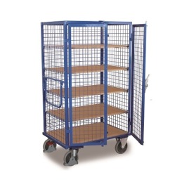 Czterokołowy wózek półkowy służący do przechowywania i przewozu małych urządzeń i przedmiotów. Ma zastosowanie m.in. w magazynach, firmach transportowych, hurtowniach, sklepach, urzędach pocztowych. Posiada jedną stałą i cztery ruchome półki. Wygodny uchwyt do pchania i ciągnięcia, złożony przylega do wózka co umożliwia otwieranie drzwiczek pod kątem 270 stopni. Dzięki dwóm mocnym kołom obrotowym oraz dwóm stałym wózek jest stabilny i wygodny w sterowaniu. Transport został wyposażony w zaawansowany system hamulcowy EasyStop, przy jednym naciśnięciu blokują się obydwa koła obrotowe.