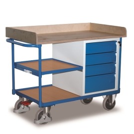Idealnie skonstruowany wózek, w którym został przemyślany każdy szczegół. Cztery szuflady i trzy powierzchnie użytkowe czynią z tego modelu wózka bardzo funkcjonalne i pomocne narzędzie pracy. Szuflady posiadają centralne zamknięcie na zamek cylindryczny, co pozwala na pozostawienie wartościowych przedmiotów. Dobre prowadzenie wózek zawdzięcza mocnym kołom z gumy termoplastycznej, w tym dwa obrotowe z hamulcem EasySTOP.