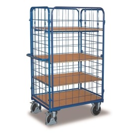 Wózek oparty o mocną konstrukcję modułową, posiada cztery półki użytkowe z płyty drewnopodobnej, z możliwością zastosowania dodatkowych wkładanych półek (drabinka do ich zawieszenia co 120mm). Pojazd przeznaczony jest do przewozu przedmiotów ważących do 500 kg. Z każdej ze stron wózek posiada ściankę z siatki o oczkach 120x120mm. Za stabilność wózka odpowiadają koła z szarej gumy termoplastycznej. Wózek wyprodukowany przez firmę VARIOfit®, specjalizującej się w produkcji nowoczesnych systemów transportowych.