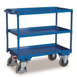 Czterokołowy wózek stołowy z trzema powierzchniami użytkowymi w postaci wanien olejoszczelnych. Ma zastosowanie m.in. w magazynach, firmach transportowych, hurtowniach, sklepach, urzędach pocztowych. Posiada ergonomiczny uchwyt i mocne koła, dzięki czemu jest stabilny i wygodny w sterowaniu.