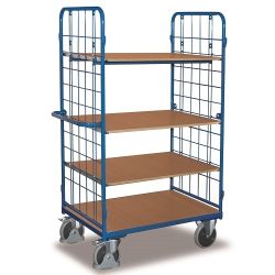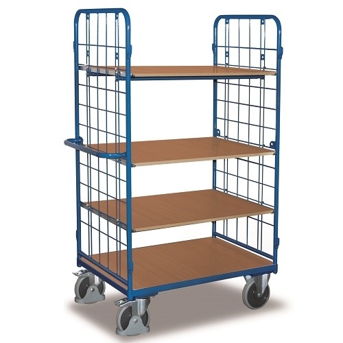 Wózek oparty o mocną konstrukcję modułową, posiada cztery półki użytkowe z płyty drewnopodobnej, z możliwością zastosowania dodatkowych wkładanych półek (drabinka do ich zawieszenia co 120mm). Pojazd przeznaczony jest do przewozu przedmiotów ważących do 500 kg. Z dwóch stron wózka zostały zamocowane ścianki z siatki o oczkach 120x120mm. Za stabilność wózka odpowiadają koła z szarej gumy termoplastycznej. Wózek wyprodukowany przez firmę VARIOfit®, specjalizującej się w produkcji nowoczesnych systemów transportowych.